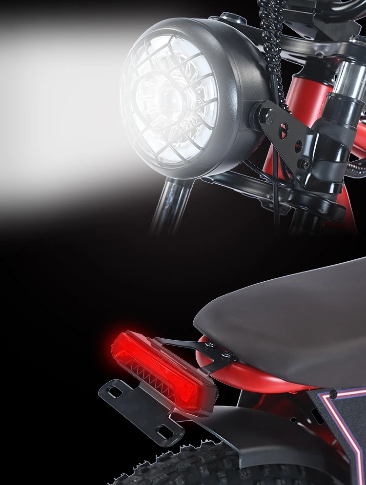 High-brightness front headlight with a wide-angle beam. Rear brake light ensures driving safety.