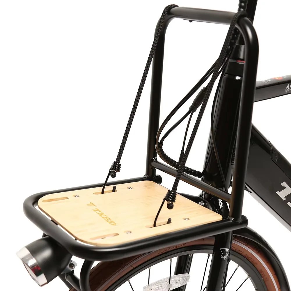 4. On this bike, we have applied our latest developed front carrier. This carrier is equipped with a strap installed on wooden