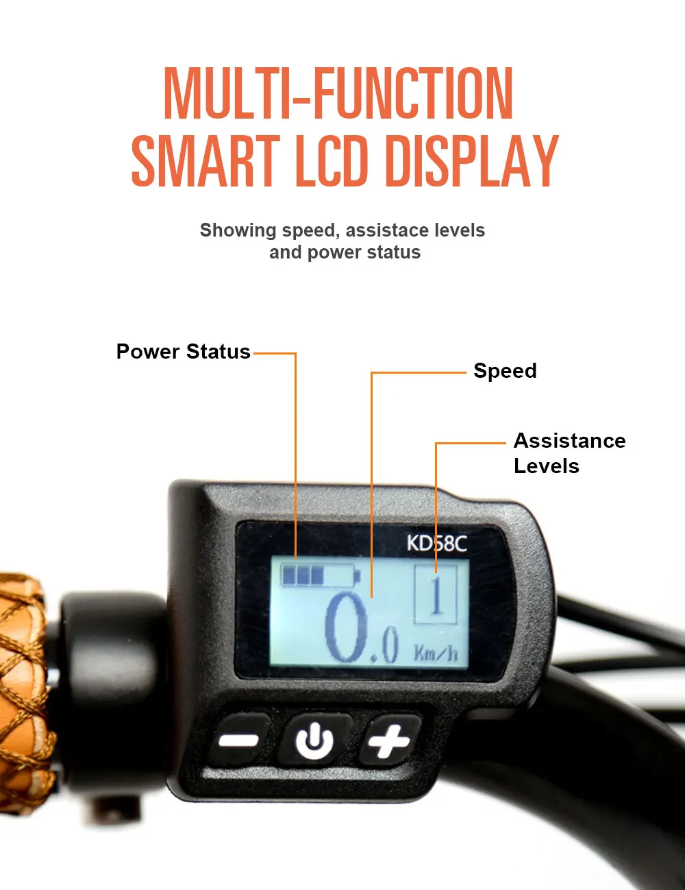 PAS only, mini LCD display, showing power status, 5assistance levels, speed and distance, as per EN15194:2017