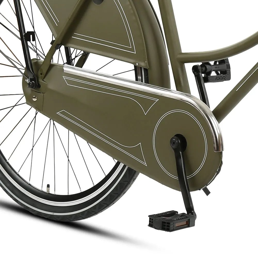 Steel mudguard, with single normal kickstand, with rear steel carrier, front/rear battery light, with bell, without elastic strape and without frame lock, with PU chaincover and dress guard